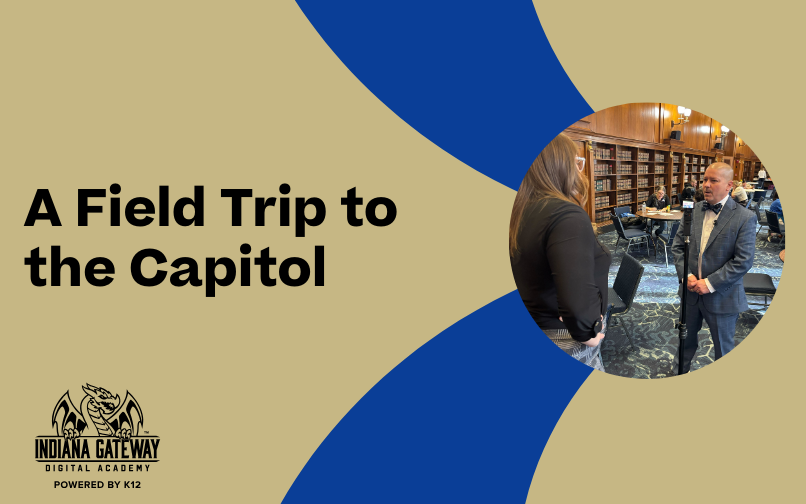 Our school leaders were proud to represent INGDA – alongside our students and families – at the Capitol Day event to highlight the positive impact of online learning. Students who attended showcased the unique flexibility of working from anywhere by completing their schoolwork in the Indiana State Library. During the event, students wrote and delivered letters to their local lawmakers to encourage them to support school choice policies, and families had the opportunity to tour the library and Statehouse.