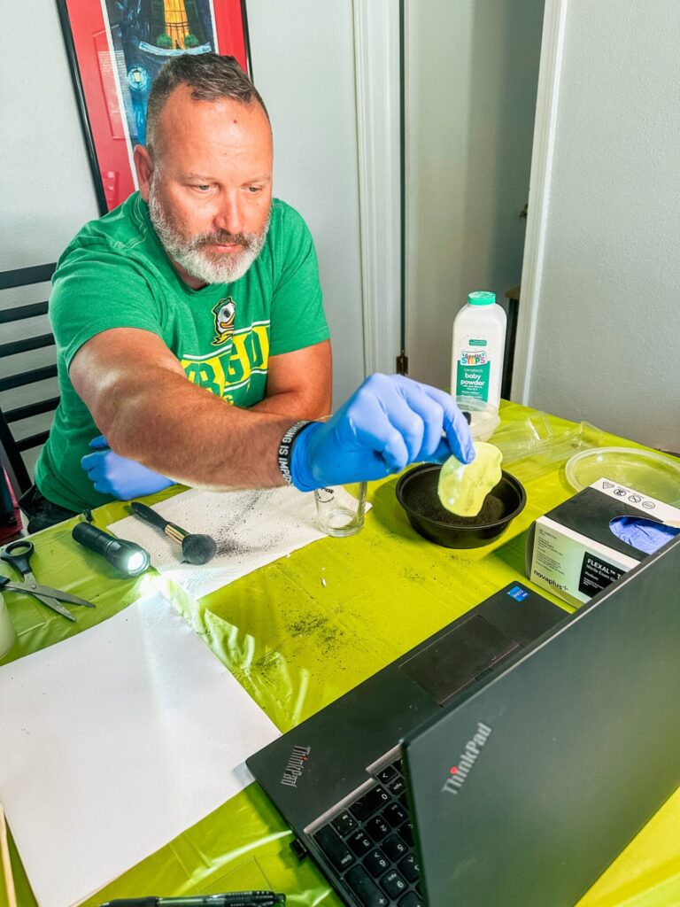 In true detective fashion, Hickson’s home was temporarily transformed into a mock crime lab—complete with tools, objects, and surfaces for fingerprint lifting. Students watched, took notes, and then set off to conduct their own investigations at home. This hands-on learning activity demonstrates how powerful online education can be when combined with immersive, experiential challenges.